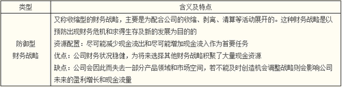從資本籌措與使用特征的角度,財務戰(zhàn)略可劃分為擴張型、穩(wěn)健型和防御型三類。