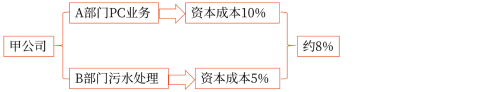 B部門從事污水處理的工程項目,由于環(huán)境保護屬國家政策支持行業(yè),且該部門在市場上具有一定的技術領先優(yōu)勢,做過一系列的大型工程項目,因而,投資者認為此類公司的風險不高,市場上相同公司獲得資本的成本約為5%。公司的加權平均資本成本約為8%。