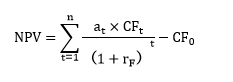 思路:利用確定當量系數(shù),可以把不確定的現(xiàn)金流量折算為確定的現(xiàn)金流量。然后用無風險利率作為折現(xiàn)率計算風險調整后的凈現(xiàn)值,也就是通過縮小凈現(xiàn)值計算的分子來完成風險的處置。