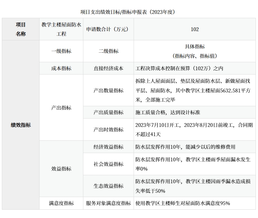 原則上每一項目均應(yīng)設(shè)置產(chǎn)出指標(biāo)和效益指標(biāo)。工程基建類項目和大型修繕及購置項目等應(yīng)設(shè)置成本指標(biāo),并逐步推廣到其他具備條件的項目。