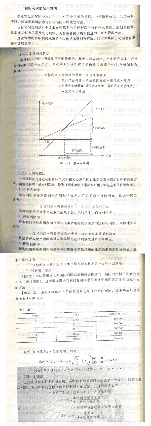 【小編“星云流水”】2013年高級會計師考試備考全面啟動,針對新版2013高會教材及大綱要求,小編對2013年高會考試《高級會計實務》各章節(jié)知識點進行系統(tǒng)梳理,今日關(guān)注第三章“企業(yè)預算管理與業(yè)績評價”第二節(jié)預測與年度經(jīng)營目標相關(guān)知識點,本篇為“2013《高級會計實務》第三章知識點精講:目標利潤的規(guī)劃方法”。
