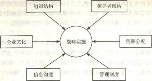 戰(zhàn)略實施過程中受許多因素影響,如組織結(jié)構(gòu)、企業(yè)文化、領(lǐng)導(dǎo)者風(fēng)格、信息溝通等,這些因素構(gòu)成了戰(zhàn)略實施支持系統(tǒng),如圖所示。