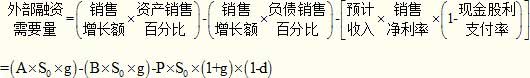 公式法以銷售收入增長額為輸人變量,借助銷售百分比和既定現(xiàn)金股利支付政策等來預(yù)測(cè)公司未來外部融資需求。