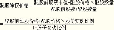 通常配股股權(quán)登記日后要對股票進(jìn)行除權(quán)處理。除權(quán)后股票的理論除權(quán)基準(zhǔn)價(jià)格為: |