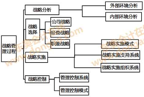 戰(zhàn)略管理過程由戰(zhàn)略分析、戰(zhàn)略選擇、戰(zhàn)略實施與戰(zhàn)略控制四個環(huán)節(jié)。