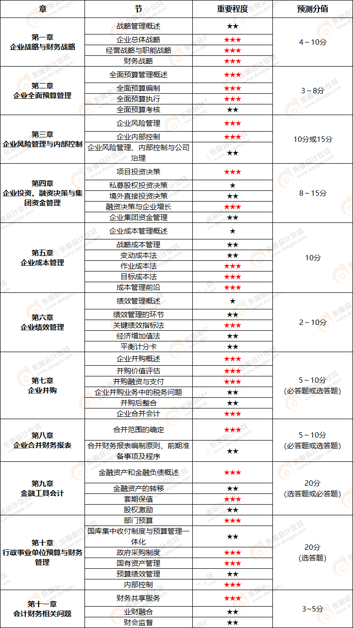 24年《高級會計實務》各章分值預測及重要程度各章分值預測及重要程度