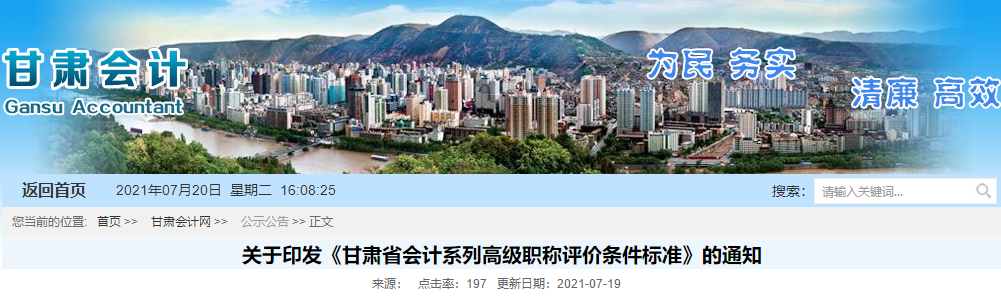 關(guān)于印發(fā)《甘肅省會(huì)計(jì)系列高級(jí)職稱評(píng)價(jià)條件標(biāo)準(zhǔn)》的通知