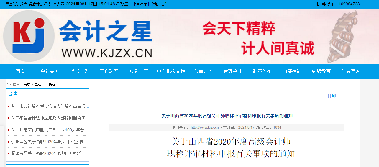 關(guān)于山西省2020年度高級(jí)會(huì)計(jì)師職稱評(píng)審材料申報(bào)有關(guān)事項(xiàng)的通知