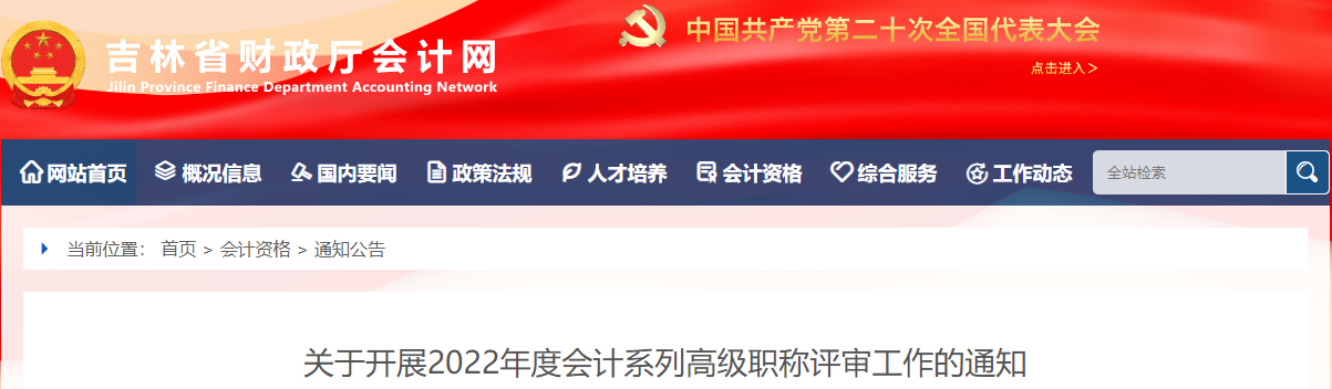 吉林省2022年高級會計職稱評審工作的通知
