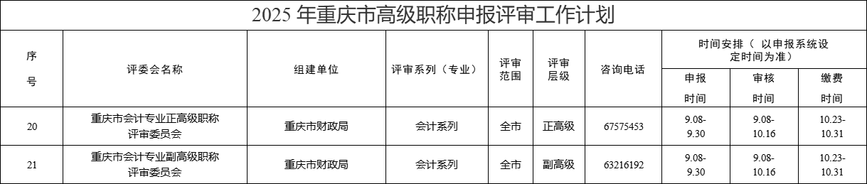 附件:1.2025年重慶市高級職稱申報評審工作計劃