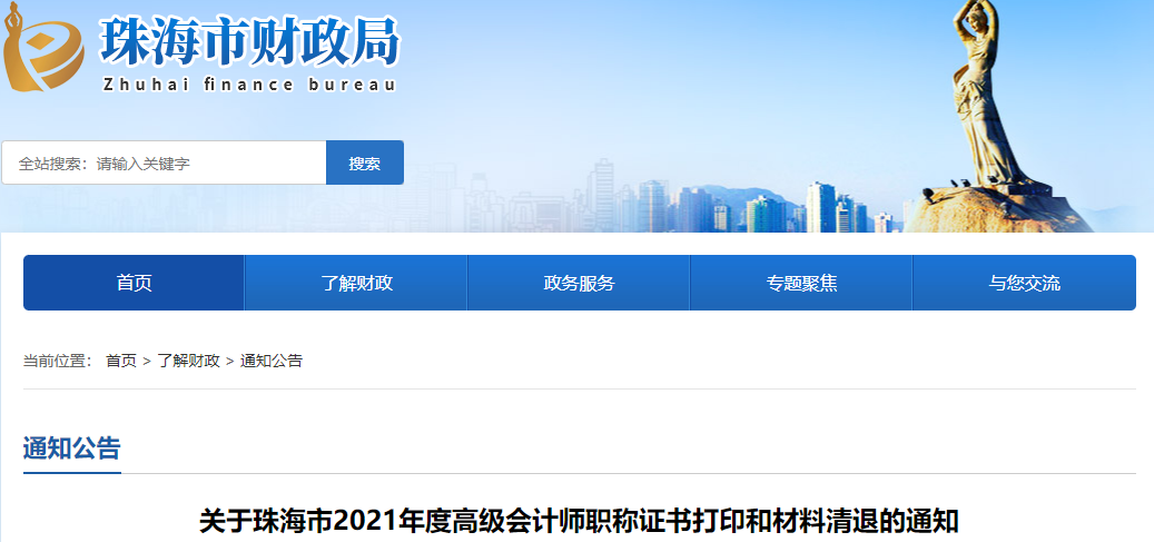 關(guān)于珠海市2021年度高級(jí)會(huì)計(jì)師職稱證書打印和材料清退的通知