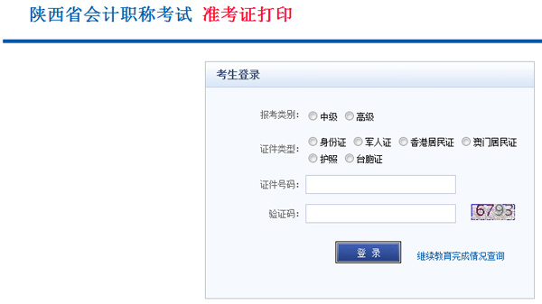 陜西省會(huì)計(jì)專業(yè)技術(shù)資格考試準(zhǔn)考證打。ㄖ屑(jí)、高級(jí))