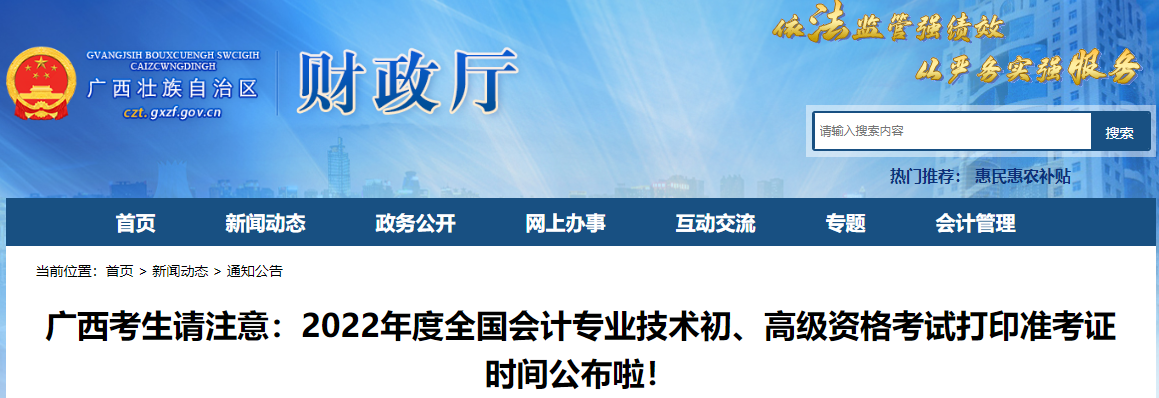 廣西考生請注意:2022年度全國會計專業(yè)技術(shù)初、高級資格考試打印準(zhǔn)考證時間公布啦!