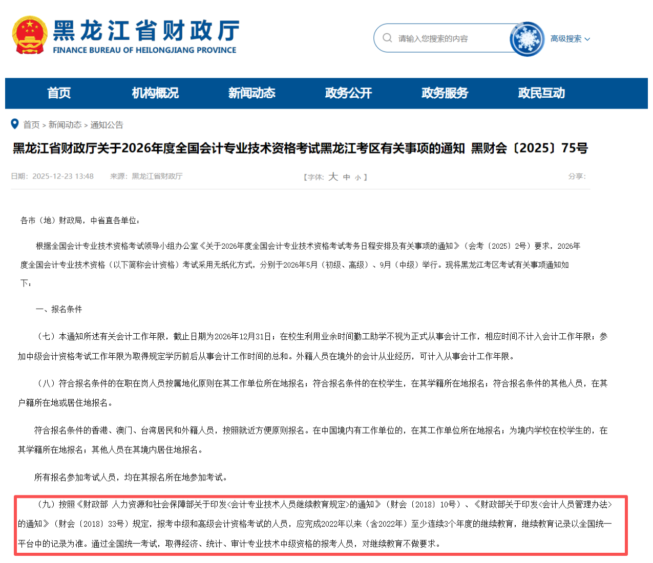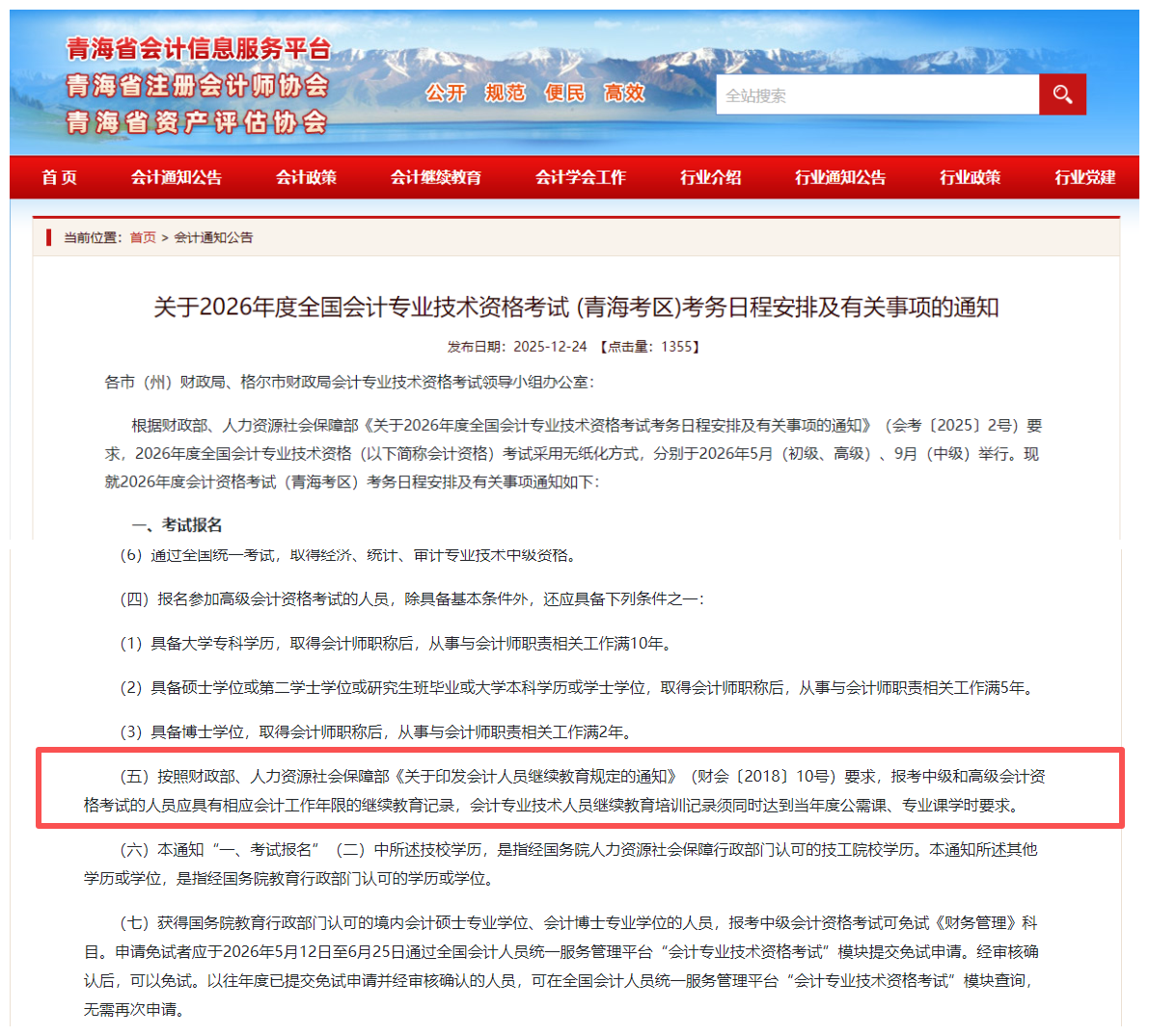2026年河南、黑龍江、青海、山東、新疆、兵團(tuán)等地在中級(jí)會(huì)計(jì)報(bào)考條件中明確提出:應(yīng)具有規(guī)定年度的繼續(xù)教育記錄,或是完成規(guī)定年限的繼續(xù)教育。