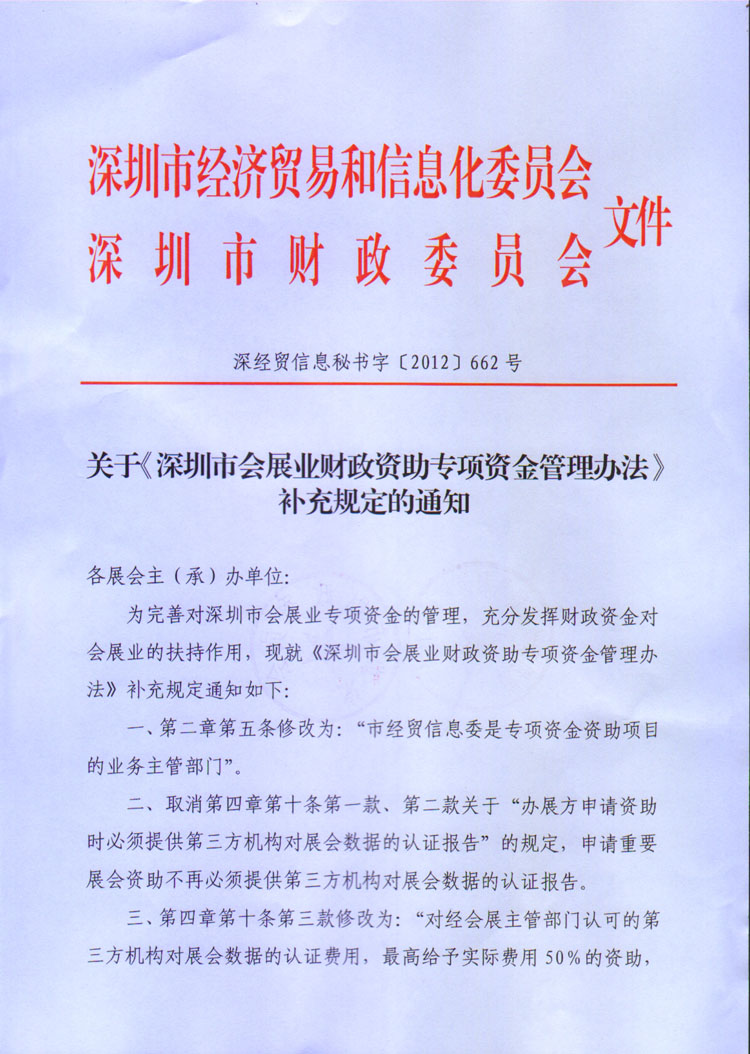 關(guān)于《深圳市會(huì)展業(yè)財(cái)政資助專項(xiàng)資金管理辦法》補(bǔ)充規(guī)定的通知
