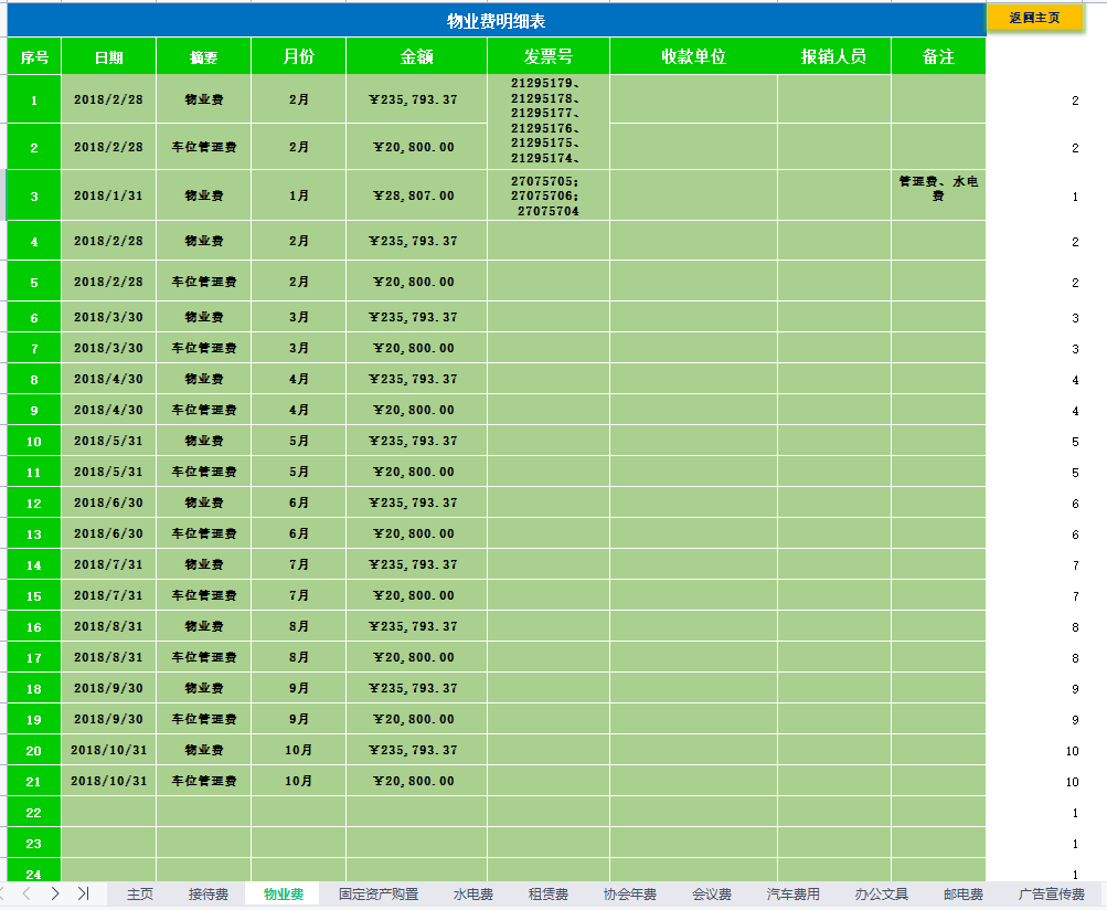 包含接待費(fèi)、物業(yè)費(fèi)、固定資產(chǎn)購(gòu)置、水電費(fèi)、租賃費(fèi)、協(xié)會(huì)年會(huì)等辦公室常見(jiàn)費(fèi)用。