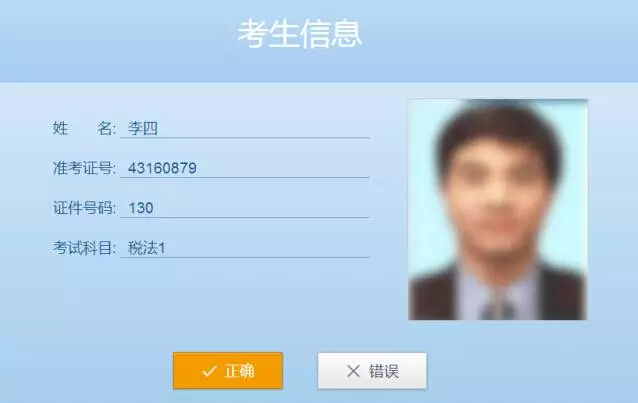 登錄后,顯示如下圖的考生信息,核對(duì)信息無(wú)誤后,點(diǎn)擊“正確”按鈕。
