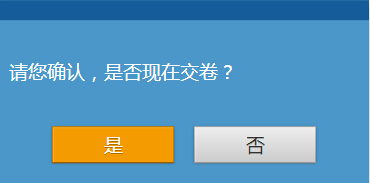 最后,系統(tǒng)會(huì)讓您最終確認(rèn)(如下圖),點(diǎn)擊“是”以后完成交卷,考試結(jié)束。
