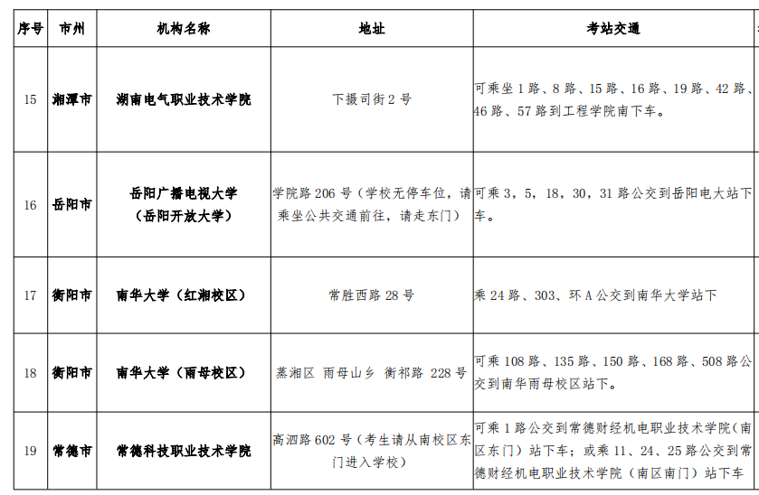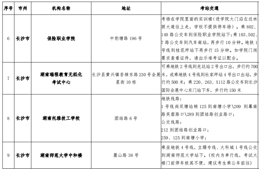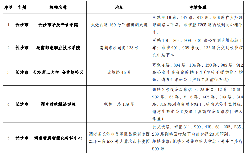 稅務(wù)師考試湖南考區(qū)考點分布圖以及交通路線