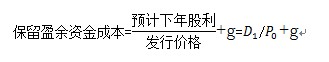 保留盈余和普通股一樣都是企業(yè)所有者權(quán)益,所以留存收益的資本成本與普通股資本成本計(jì)算方法一致,只不過(guò)不考慮籌資費(fèi)用。