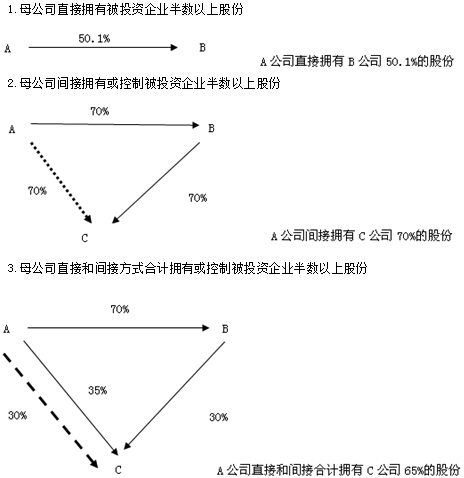 (一)母公司直接或通過子公司間接擁有其半數(shù)以上的表決權(quán)的被投資單位