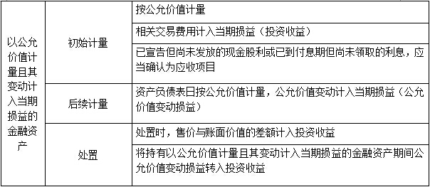 以公允價值計量且其變動計入當期損益的金融資產的會計處理如下表所示: