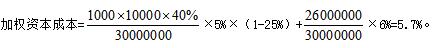 大宇公司資本總額的賬面價值1000萬元,其中債務資本占40%,稅前債務利息率為5%;權(quán)益資本占60%。債務資本金的市場價值等于其面值。所得稅稅率為25%。