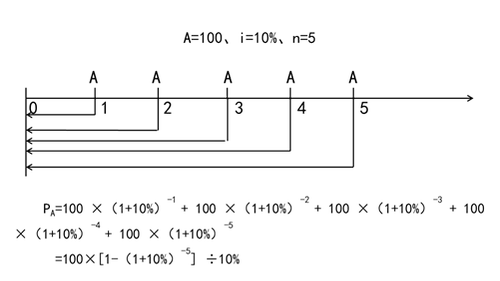 公式3:PA=A×(F/A,i,n)×(P/F,i,m+n)