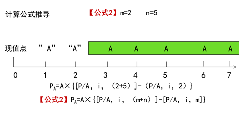 公式2:PA=A×{[P/A,i,(m+n)]-[P/A,i,m]}