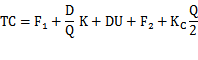 為了求出TC的極小值,對其進行求導(dǎo)演算,可以得出經(jīng)濟訂貨基本模型,公式如下: