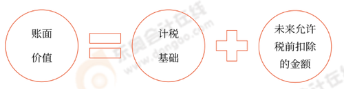 可以這樣理解,會(huì)計(jì)上的賬面價(jià)值包括兩部分:一部分是稅法認(rèn)可的,稱為計(jì)稅基礎(chǔ);另一部分是稅法不認(rèn)可的,未來期間才允許稅前扣除的金額。