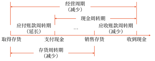現(xiàn)金周轉(zhuǎn)期=經(jīng)營周期-應(yīng)付賬款周轉(zhuǎn)期