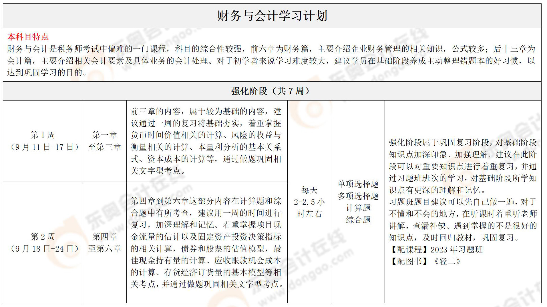 2023年稅務(wù)師《財務(wù)與會計》強(qiáng)化+沖刺階段學(xué)習(xí)計劃