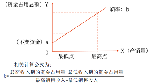 資金預測的高低點法是指根據(jù)企業(yè)一定期間資金占用的歷史資料,按照資金習性原理和Y=a+bX直線方程式,選用最高收入期和最低收入期的資金占用量之差與銷售收入之差進行對比,先求b的值,然后再求出a的值,從而估計資金需要量的一種方法。
