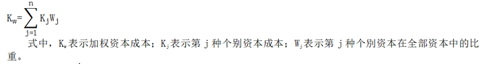 企業(yè)加權(quán)資本成本,是以各項個別資本在企業(yè)總資本中的比重為權(quán)數(shù),對各項個別資本成本進(jìn)行加權(quán)平均而得到的總資本成本。計算公式為: