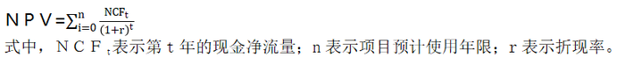 凈現(xiàn)值(NPV:NetPresentValue),是指一個(gè)投資項(xiàng)目在項(xiàng)目計(jì)算期內(nèi),按設(shè)定折現(xiàn)率或基準(zhǔn)收益率計(jì)算的各年凈現(xiàn)金流量現(xiàn)值的代數(shù)和。計(jì)算公式為: