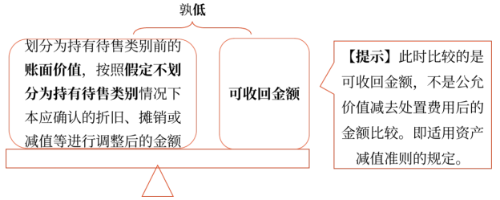 ③(價值恢復)如果后續(xù)資產負債表日持有待售的處置組公允價值減去出售費用后的凈額增加,以前減記的金額應當予以恢復,并在劃分為持有待售類別后適用本章計量規(guī)定的非流動資產確認的資產減值損失金額內轉回,轉回金額計入當期損益。