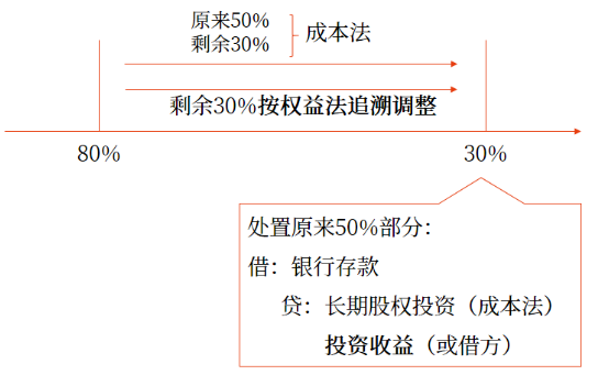 對剩余股權投資由成本法調(diào)整為權益法的思路分析: