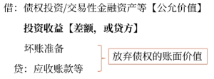 2.放棄債權(quán)的公允價值與賬面價值之間的差額,計入“投資收益”。