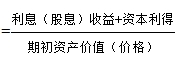 =期限內(nèi)資產(chǎn)現(xiàn)金凈收入(利息、紅利或股息)+資本利得