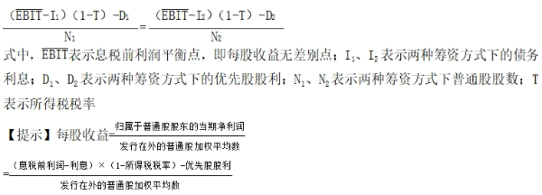 所謂每股收益無差別點,是指不同籌資方式下每股收益都相等時的息稅前利潤或業(yè)務量水平,根據(jù)該指標對各備選方案進行比較選擇