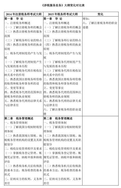 點(diǎn)擊閱讀“2015年稅務(wù)師《涉稅服務(wù)實(shí)務(wù)》考試大綱對(duì)比”原文