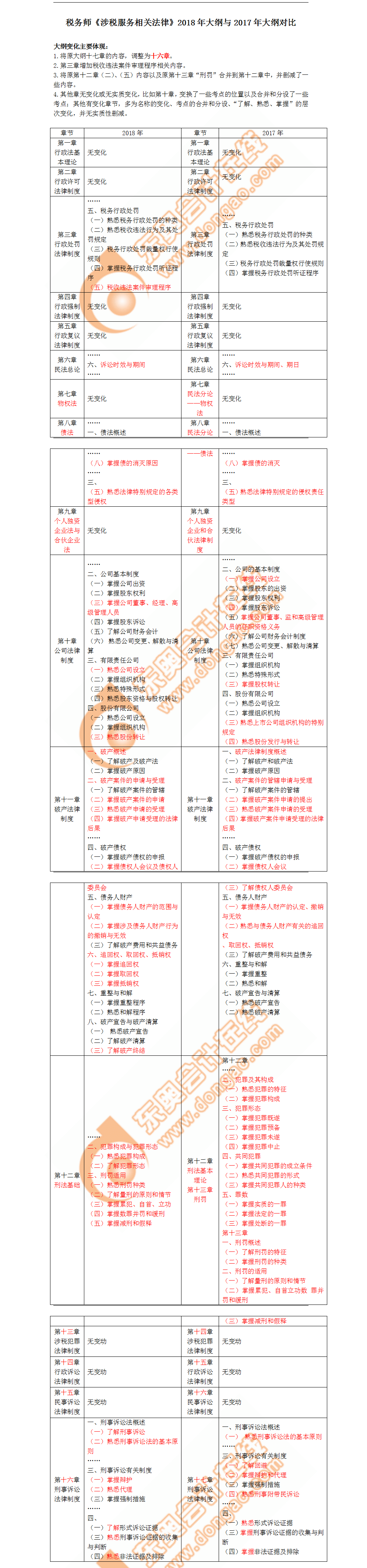 2018稅務(wù)師《涉稅服務(wù)相關(guān)法律》考試大綱有什么變化?