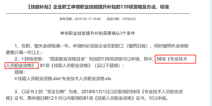山東省濟南地區(qū)下發(fā)了關(guān)于《【技能補貼】企業(yè)職工申領(lǐng)職業(yè)技能提升補貼的139項資格及辦法、標(biāo)準(zhǔn)》的通知,稅務(wù)師證書屬于58項《專業(yè)技術(shù)人員職業(yè)資格》證書之一,可對應(yīng)申請1500元補貼。
