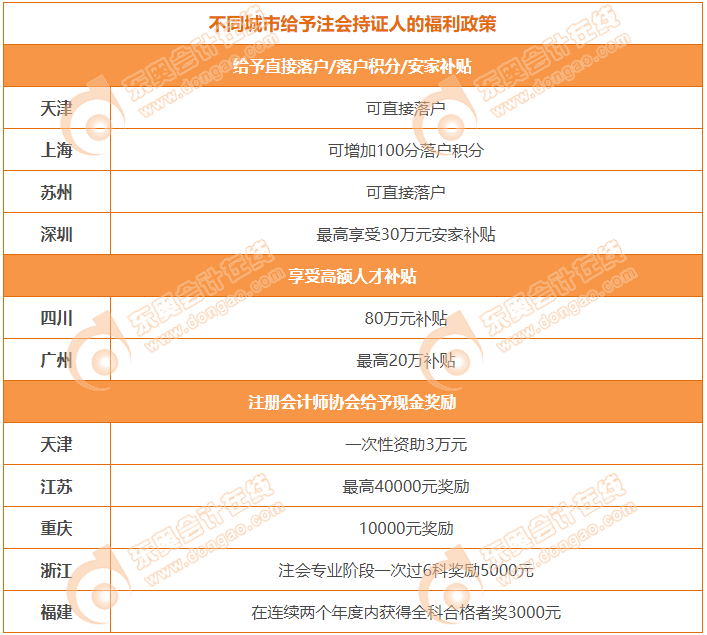 包括北京、上海、天津、福建等多個(gè)地區(qū)推出了注會證書與職稱類證書的互認(rèn)互免政策,例如例如在北京、天津等城市注冊會計(jì)師等同會計(jì)師,在上海,符合一定條件的注冊會計(jì)師可免于參加會計(jì)專業(yè)技術(shù)高級資格考試等等,除此之外各地還有政策加持,鼓勵(lì)考生參加注冊會計(jì)師考試!