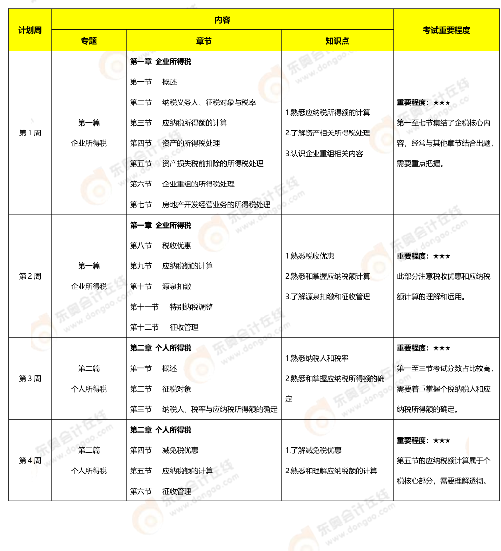《稅法二》基礎(chǔ)階段章節(jié)重要程度