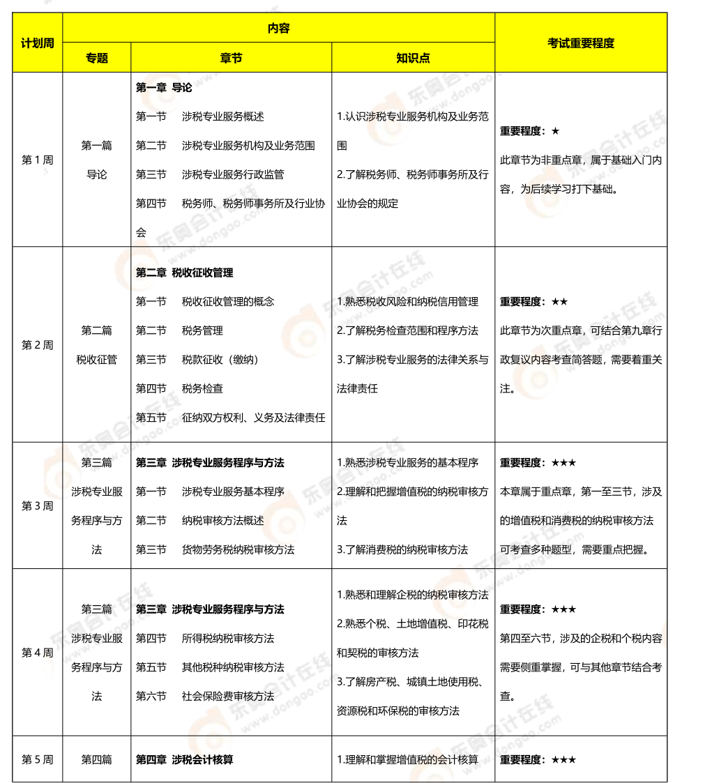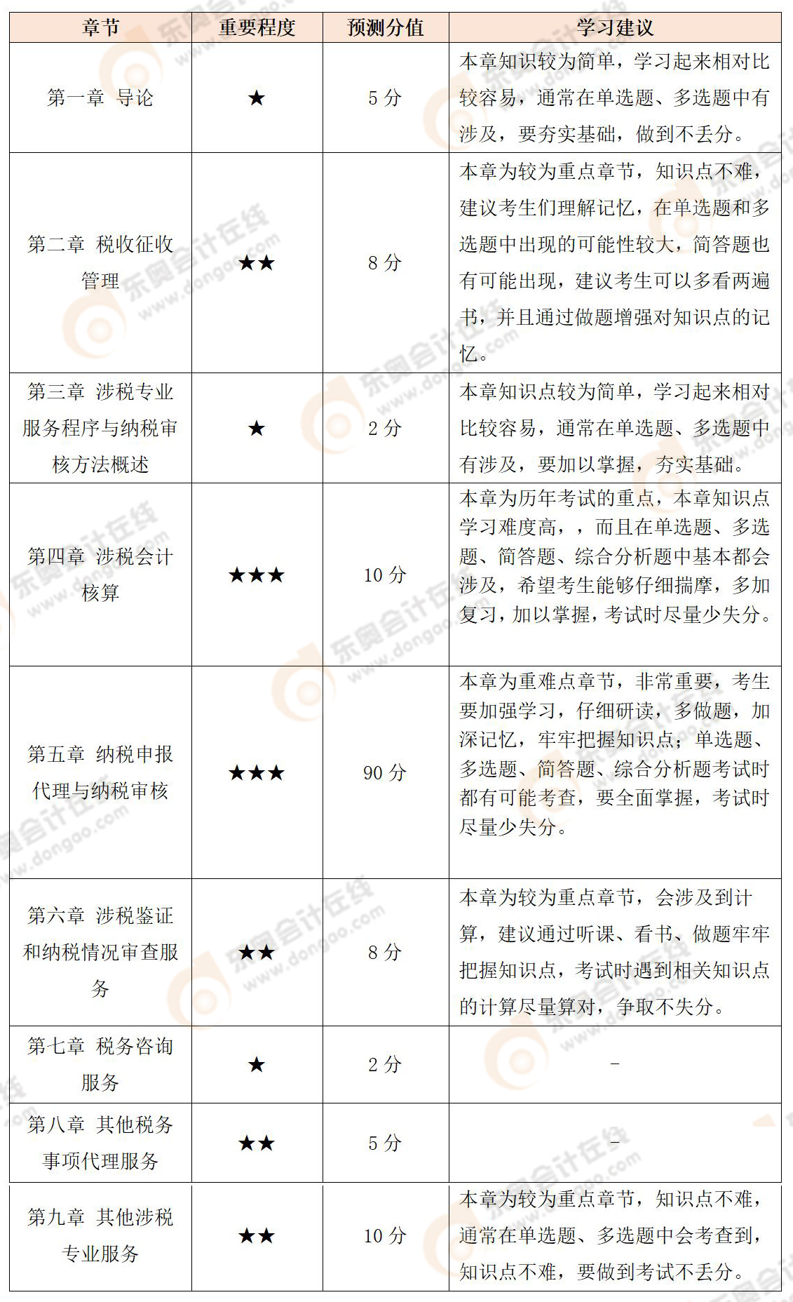 《涉稅服務實務》基礎階段章節(jié)重要程度