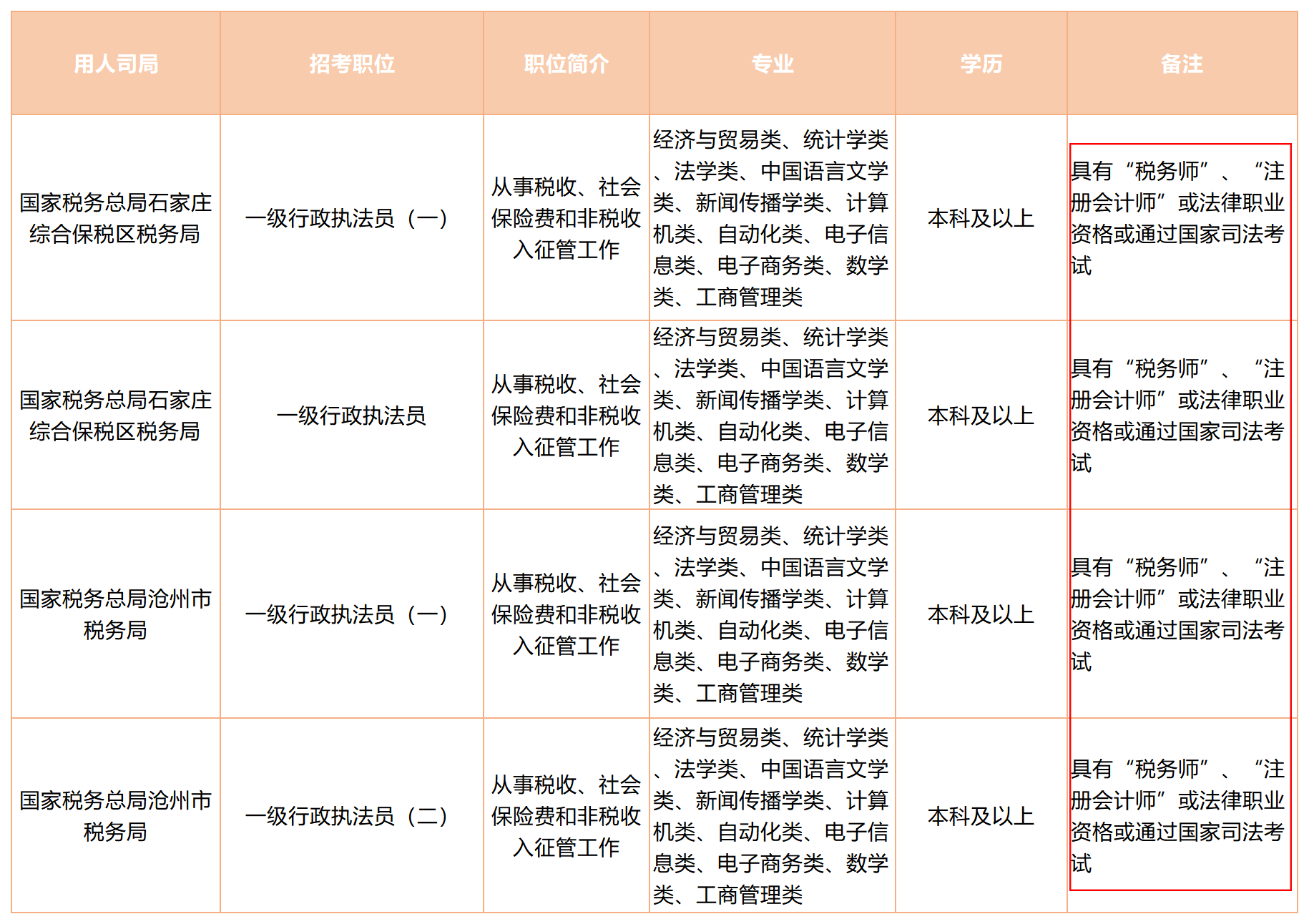 國(guó)家或地方稅務(wù)、財(cái)政局是財(cái)務(wù)人的考公熱門崗位,除去專業(yè)匹配外,個(gè)別崗位也對(duì)相關(guān)行業(yè)資格證有需求。
