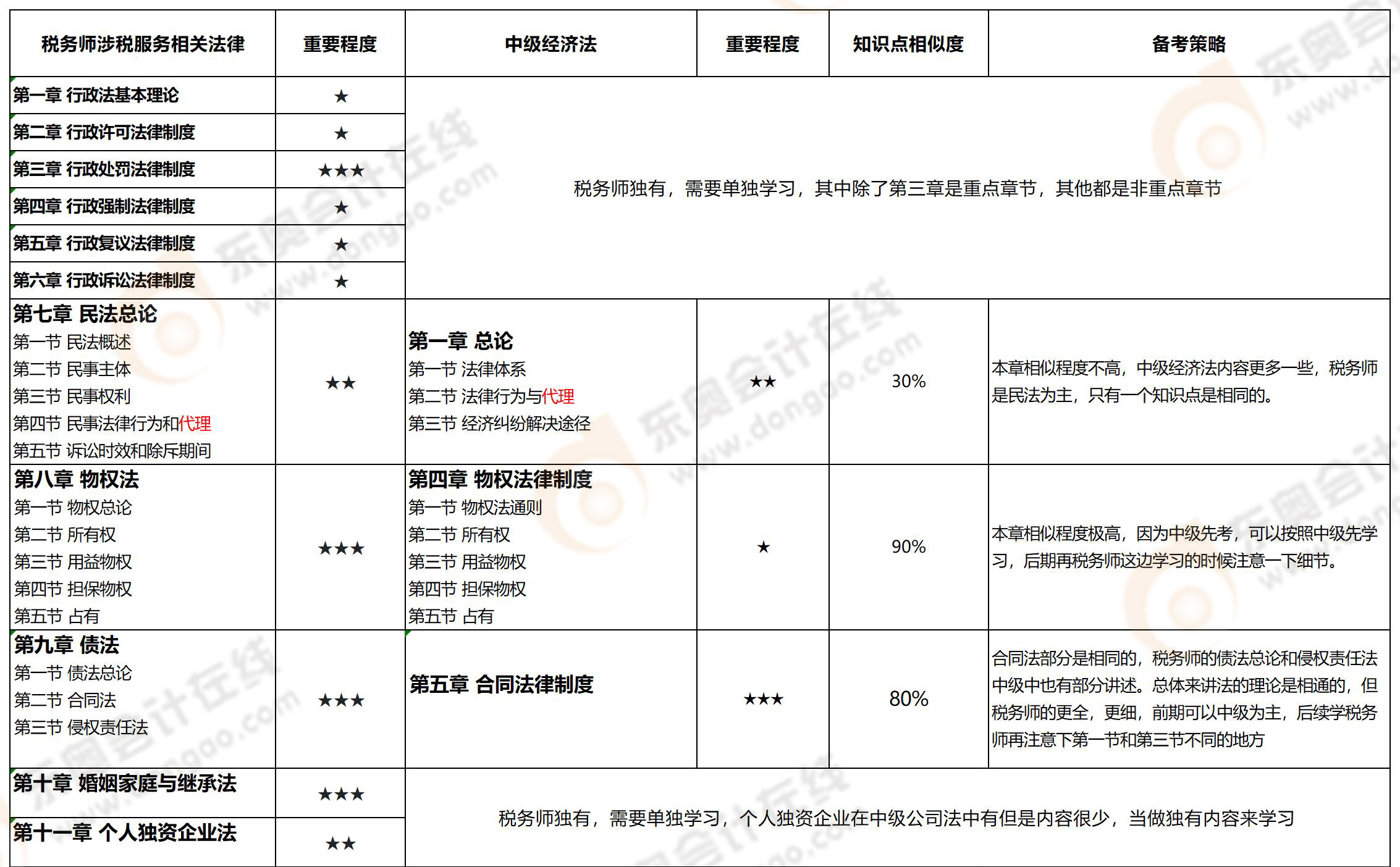 經(jīng)濟法20%中級經(jīng)濟法前四章的內(nèi)容與比稅務(wù)師的內(nèi)容有重合,尤其是第2-4章內(nèi)容是高度重合的,學(xué)習(xí)完中級經(jīng)濟法再去學(xué)習(xí)稅務(wù)師的涉稅服務(wù)相關(guān)法律,只需要簡單的過一遍知識點即可。