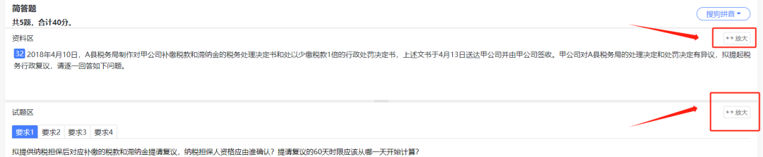 2.主觀題區(qū)域增加“放大”按鈕
